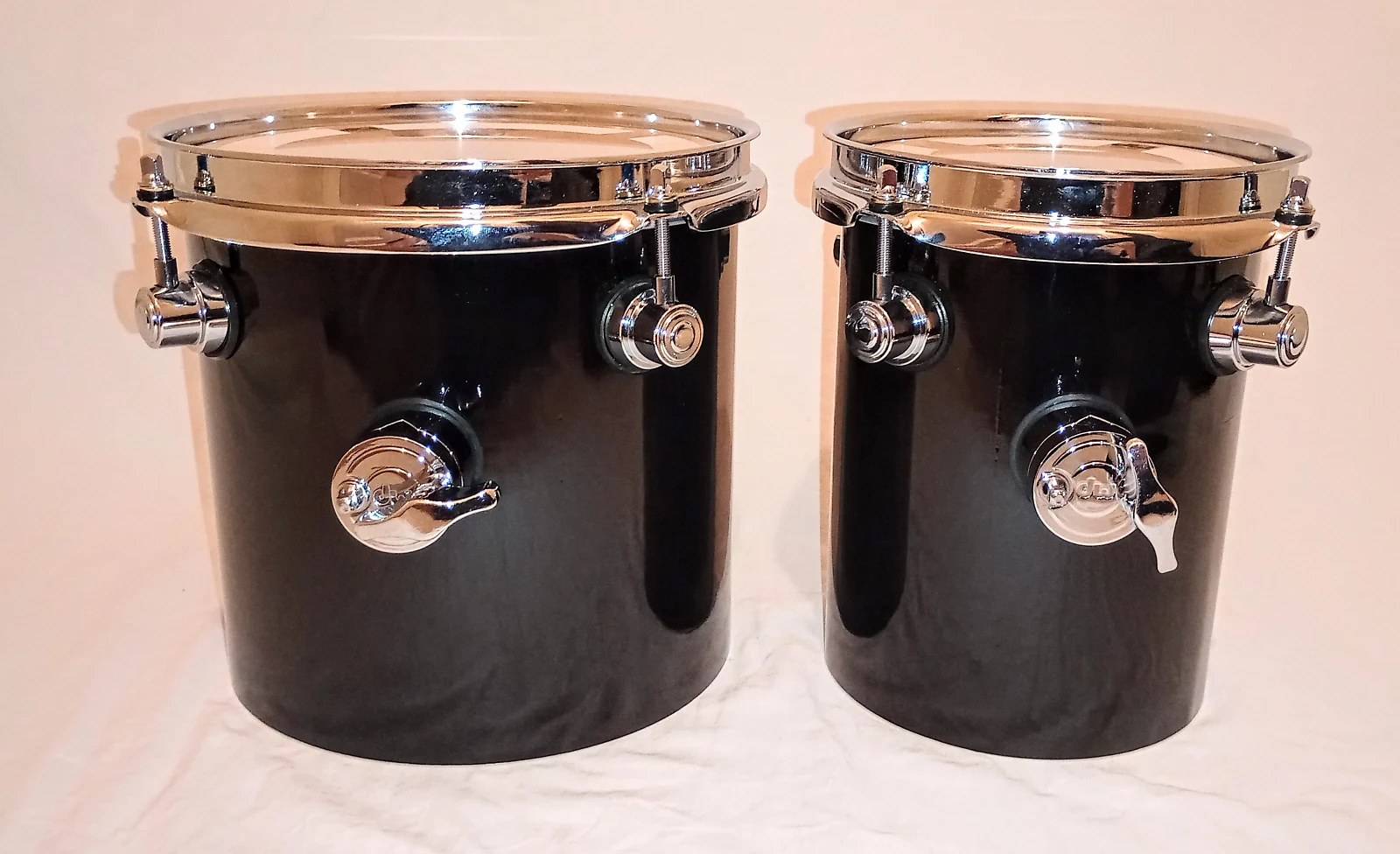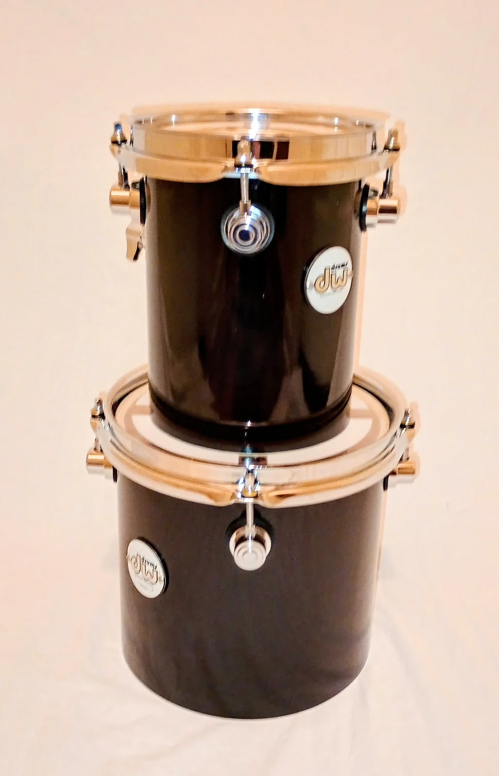DW DESIGN CUSTOM HIGH TOMS PAIR EBONY LACQUER – 6″/8″ – FREE SHIP TO C-USA!
