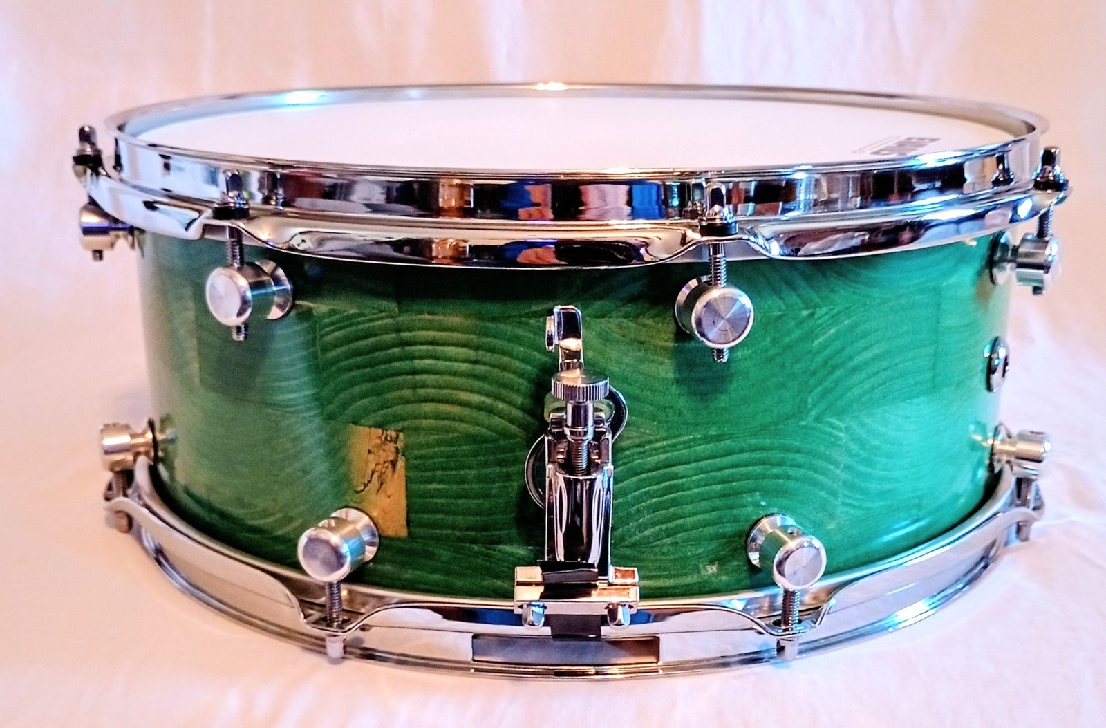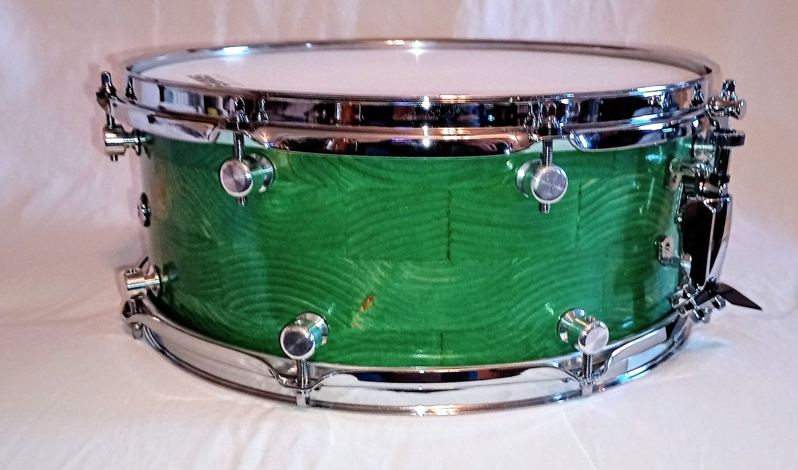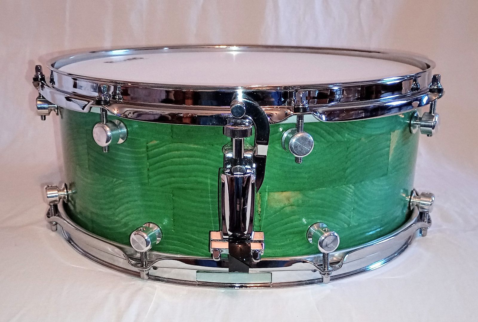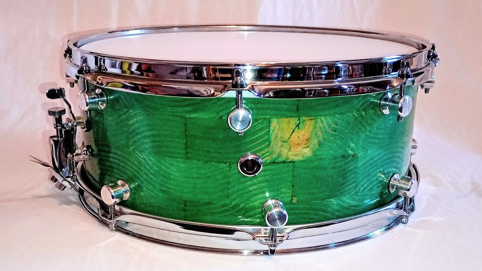 MP CUSTOM STAVE SNARE DRUM WITH INSTA-DROP STRAINING SYSTEM™ PONDEROSA GREEN LACQUER AND SHIPS FREE TO C-USA!