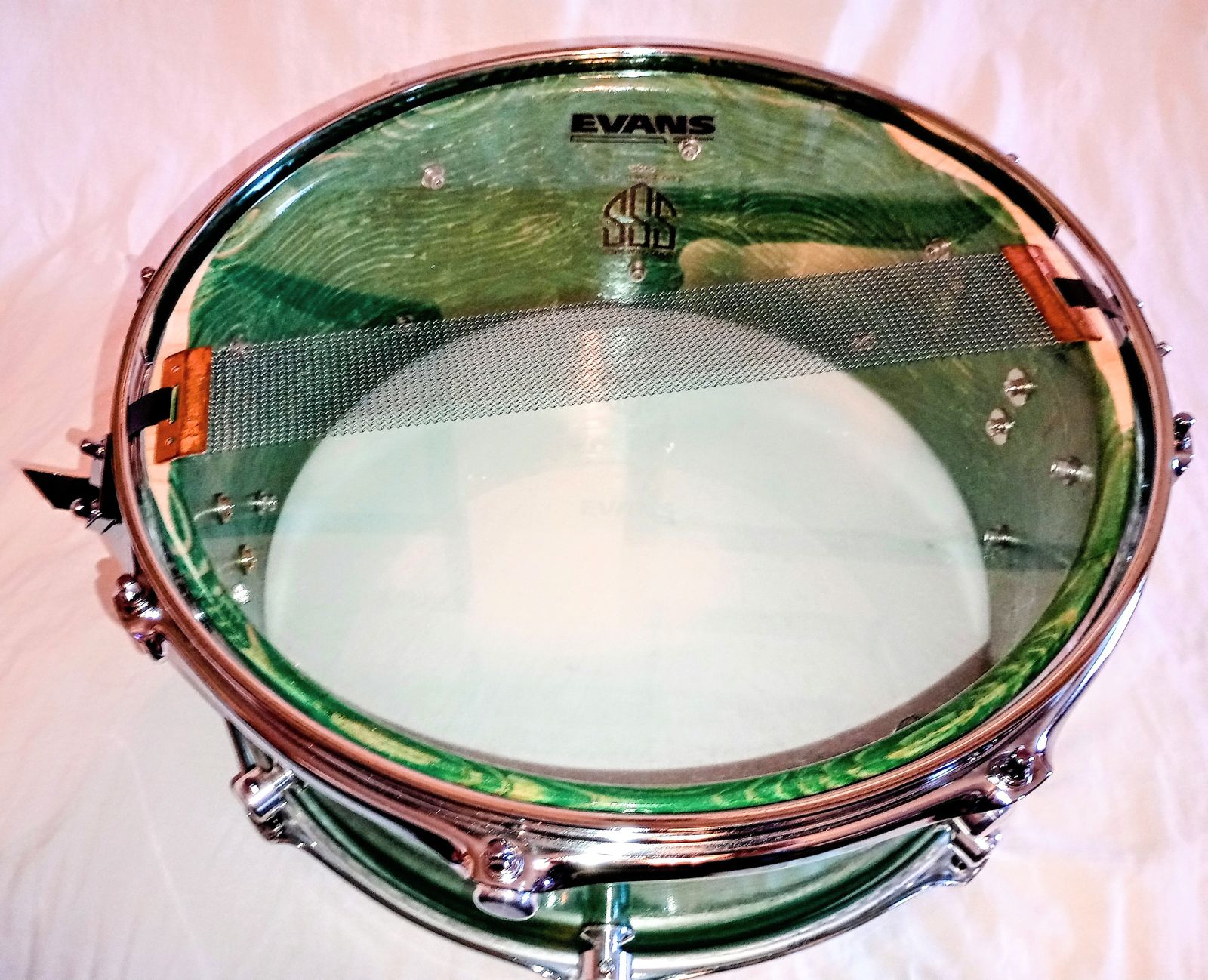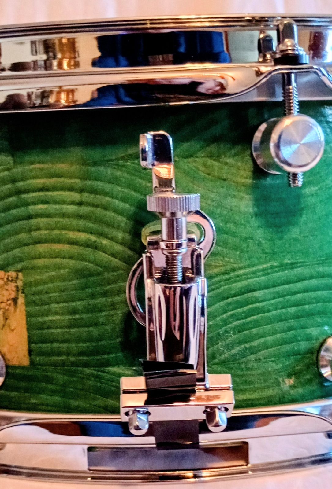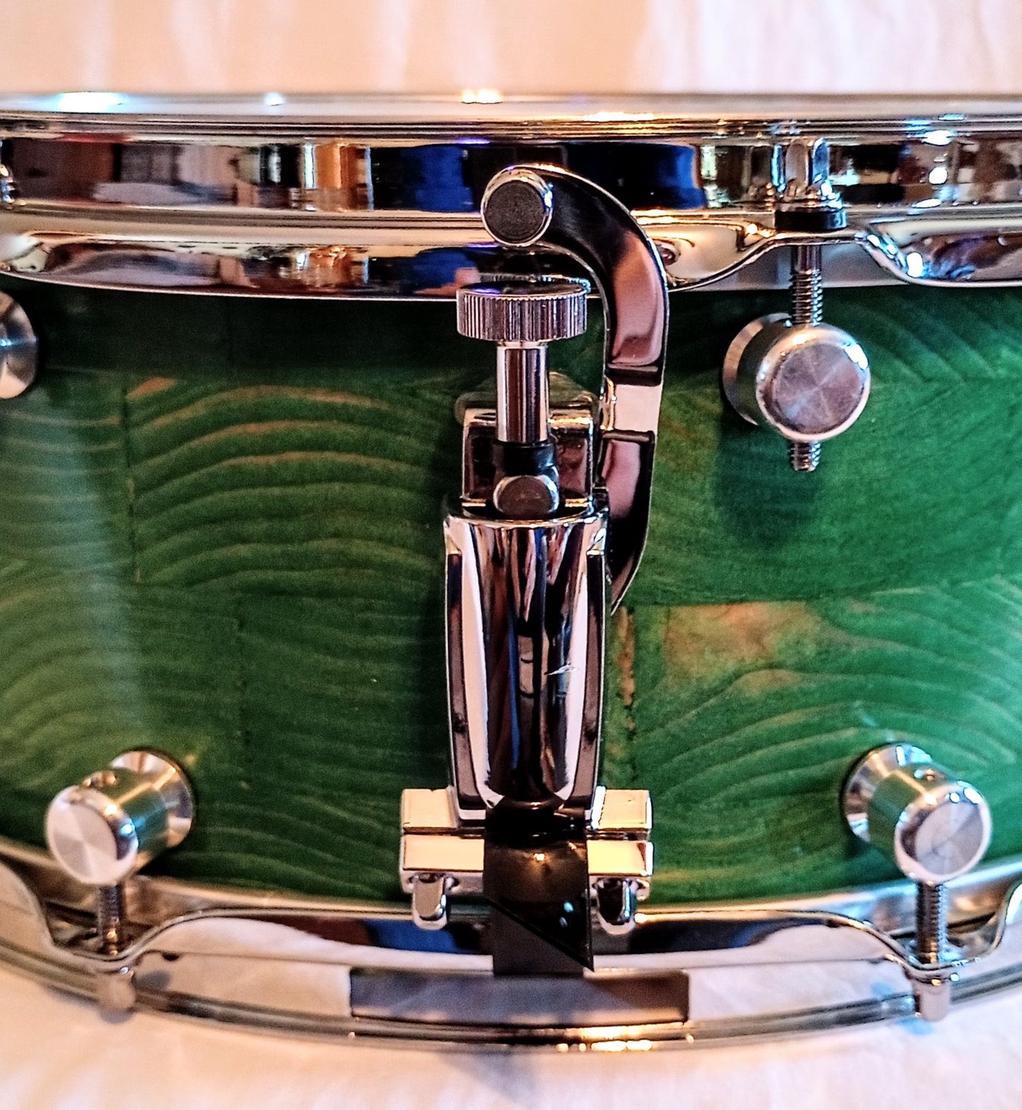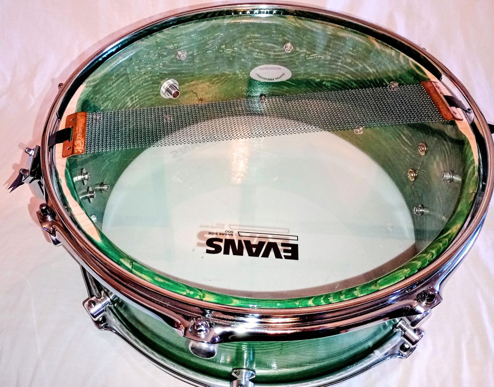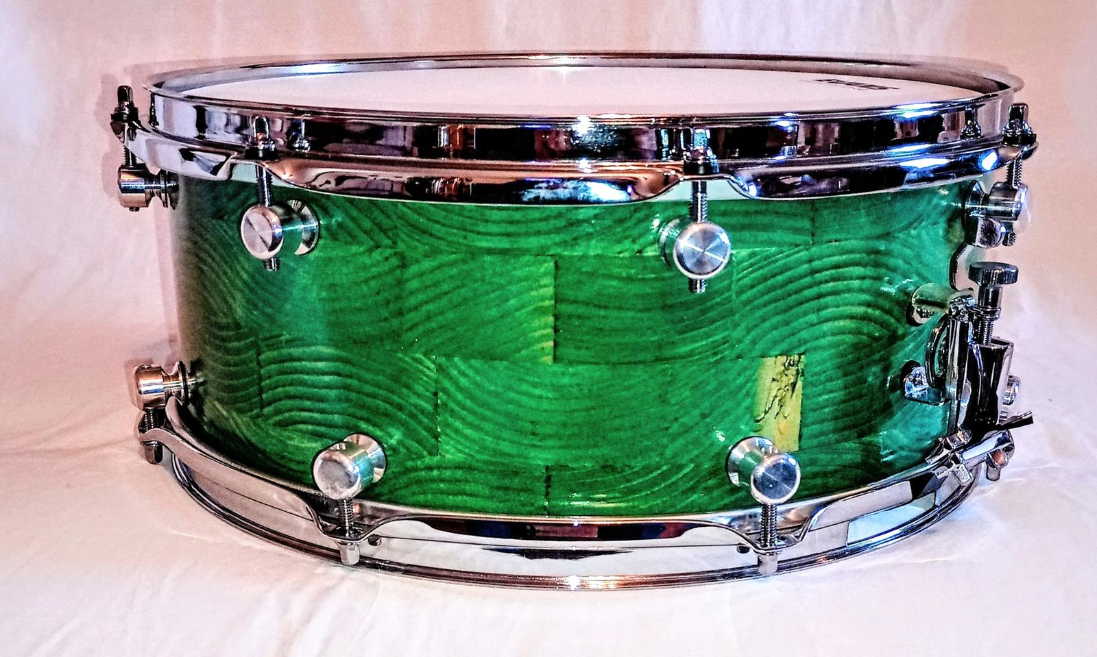 MP CUSTOM STAVE SNARE DRUM WITH INSTA-DROP STRAINING SYSTEM™ PONDEROSA GREEN LACQUER AND SHIPS FREE TO C-USA!