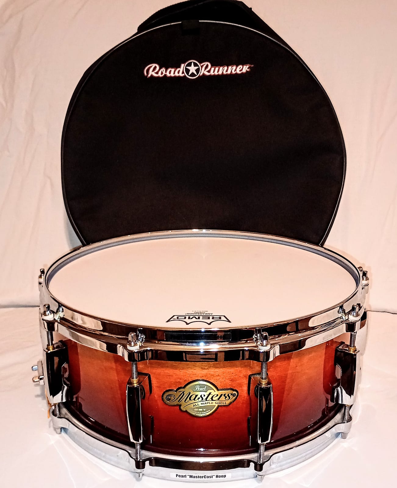 PEARL MASTERS MAPLE SNARE DRUM WITH ROAD-RUNNER PROTECTOR/CARRY BAG